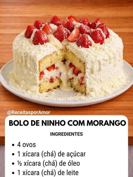 Bolo de Ninho com Morango — Cremoso, Fofinho e Perfeito para Qualquer Ocasião!