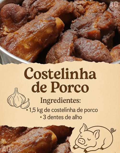 2. Por que usar banha de porco em vez de óleo comum? A banha de porco é mais estável em altas temperaturas e complementa o sabor natural da costelinha. Além disso, ela contribui para aquela textura brilhante e apetitosa da carne finalizada.