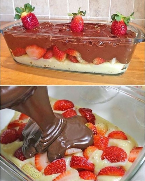 A genialidade deste preparo reside na sua técnica de fusão fria: o doce de leite é misturado ao creme de leite para formar um fudge macio, que é então enriquecido com o chocolate derretido para formar um ganache denso. Este creme de três ingredientes é distribuído sobre uma base generosa de morangos frescos, permitindo que os sucos da fruta se misturem à cremosidade do doce durante o resfriamento. O resultado é uma sobremesa onde o calor e o frescor se encontram, e o doce é cortado pela acidez, criando um equilíbrio perfeito.