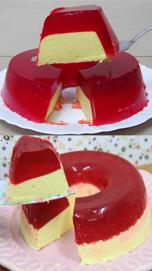 O sucesso desta receita reside em garantir que a camada cremosa esteja bem firme antes de receber o líquido da gelatina, e no truque para que a gelatina chegue ao fundo da forma.